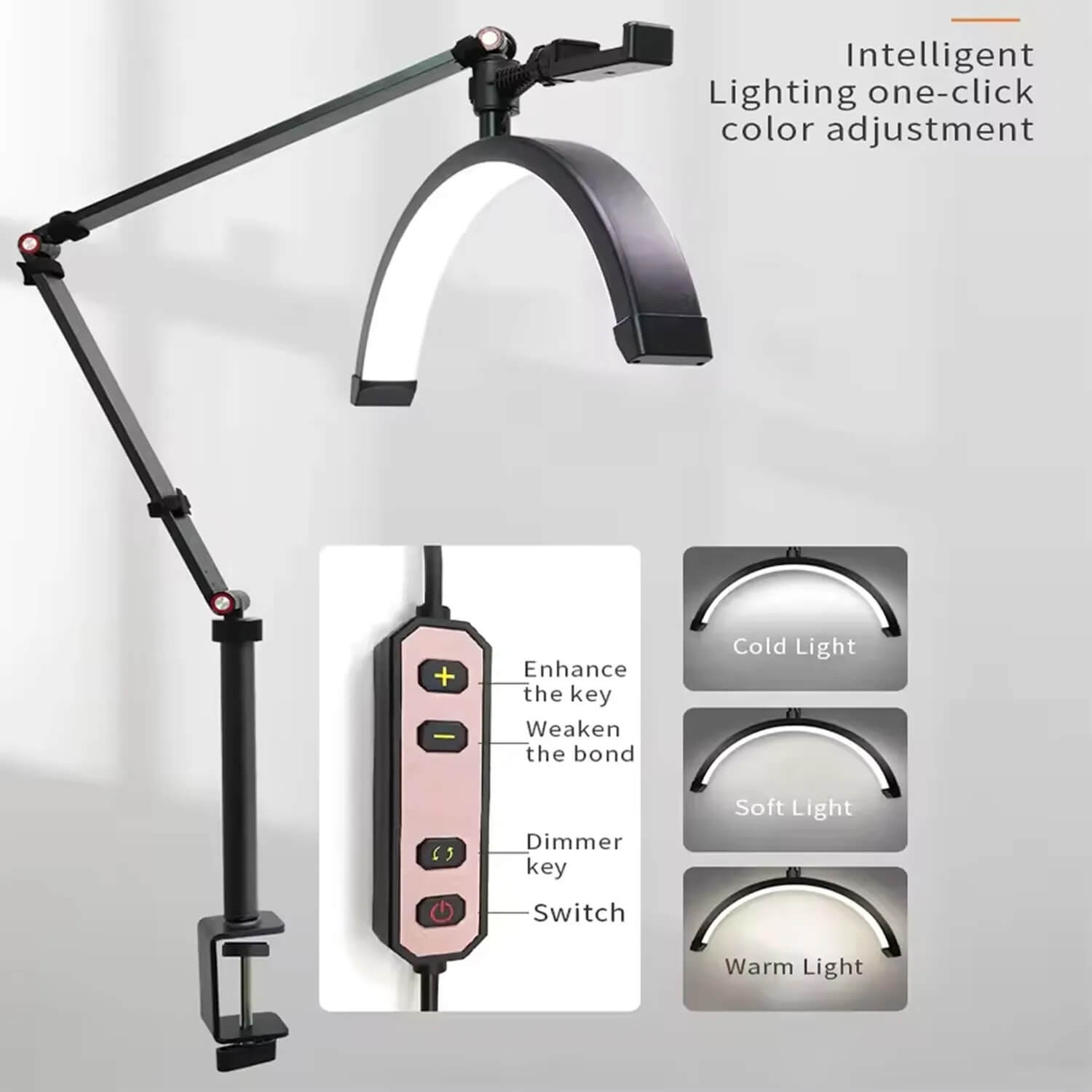 16″ Half LED Moon Light Lamp Arc LED Table Clamped Nail lighting lamp Features: