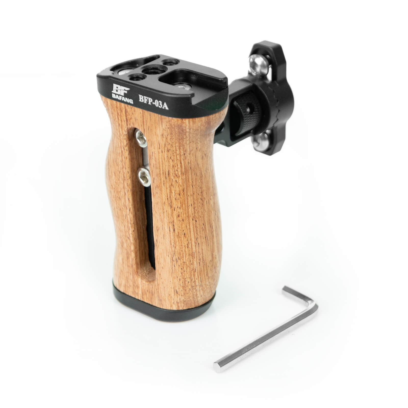 Enhance your filming stability with the BAFANG Universal Wooden Side Handle Grip. Designed for left-hand use, this lightweight and ergonomic handle provides a secure and comfortable grip for extended shooting sessions.