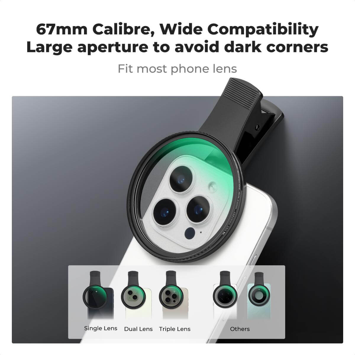 Equipped with 67mm black soft 1/4 & CPL filter, the 2-in-1 filter provides both black soft and polarized light elimination effects, suitable for a variety of photographic environments, can eliminate reflections and soften highlights.