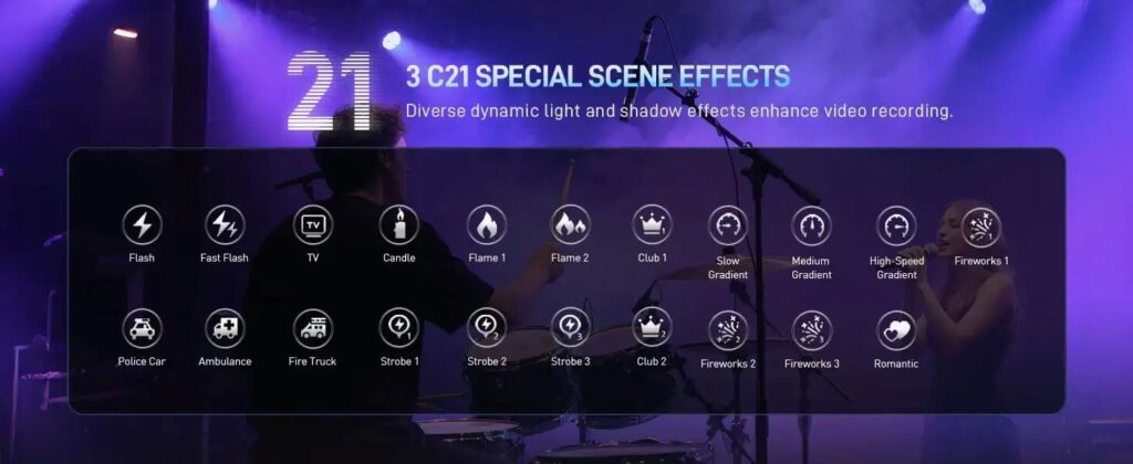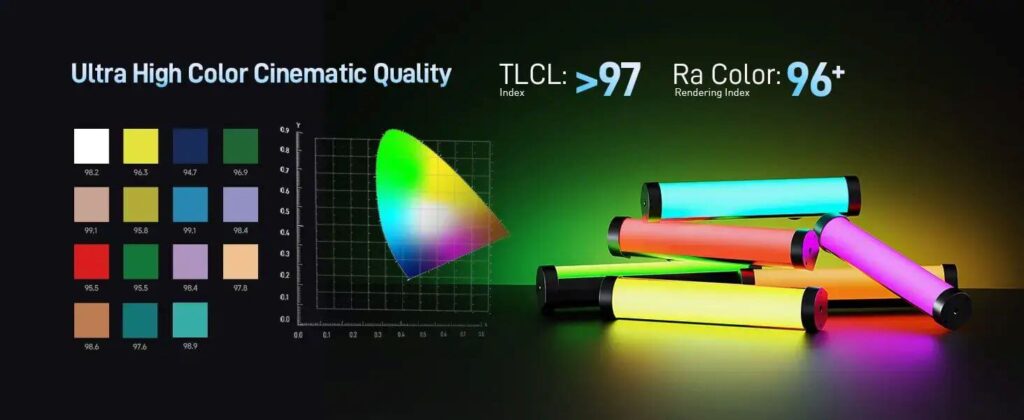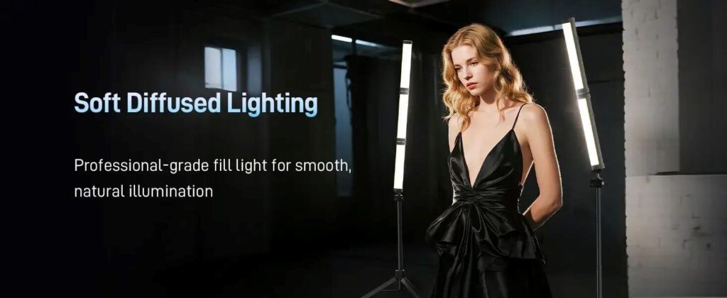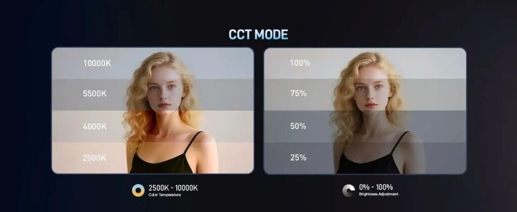 Smooth 0–100% brightness adjustment, CRI ≥95 for accurate color rendering, and an optional diffuser for softer effects.