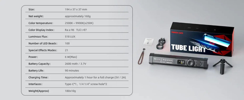 Lightweight, powerful, and built for creativity — the B190s LED Tube Light is your ultimate on-the-go lighting companion.